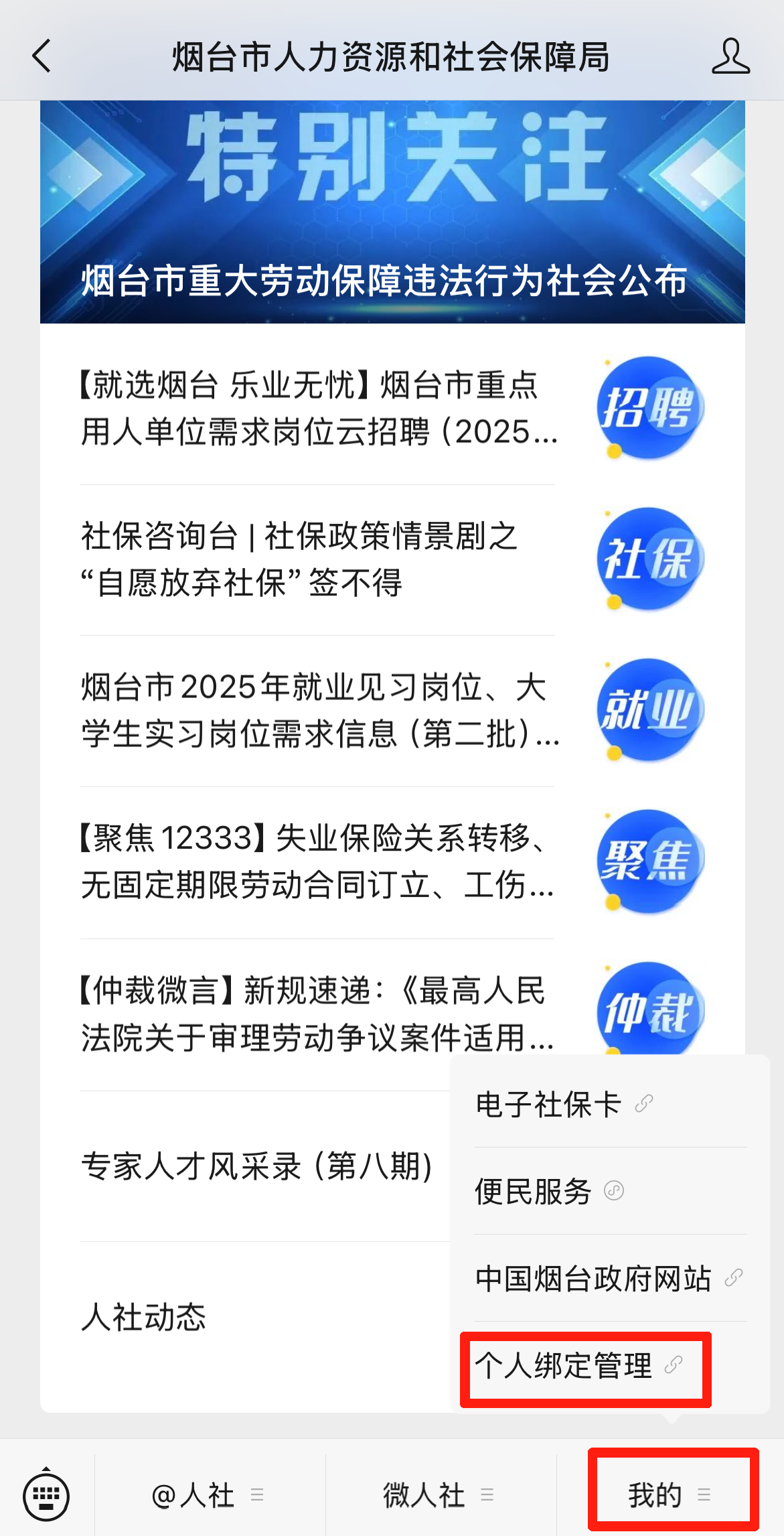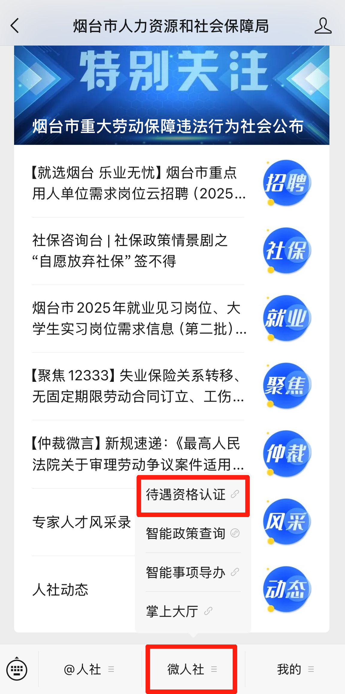 (1)關(guān)注煙臺市人力資源和社會保障局微信公眾號